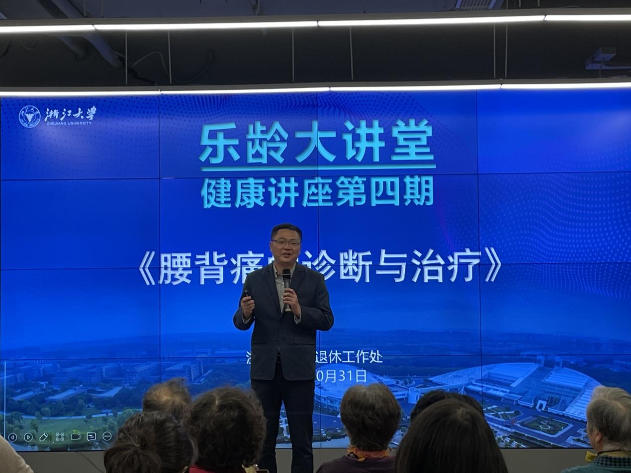 为加强老年健康知识宣传和教育,提升老年人健康素养,浙江大学离退休工作处特别开设“乐龄大讲堂”系列健康讲座。10月31日上午,我处邀请到浙江大学医学院附属第二医院骨科专家张宁,为学校离退休人员讲解腰背痛的诊断和治疗相关知识。讲座由离退休工作处专聘副处长杨正明主持,近20位退休老同志现场参加了健康讲座。