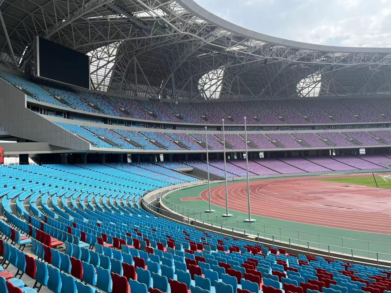 整座体育场由特种混凝土的建筑材质浇筑,场馆寿命可长达百年之久。其中,钢结构是建设过程中最大的难点之一。工作人员向大家介绍,体育场总共有55朵“花瓣”,其中最大一朵“花瓣”的钢结构自重就达839吨。