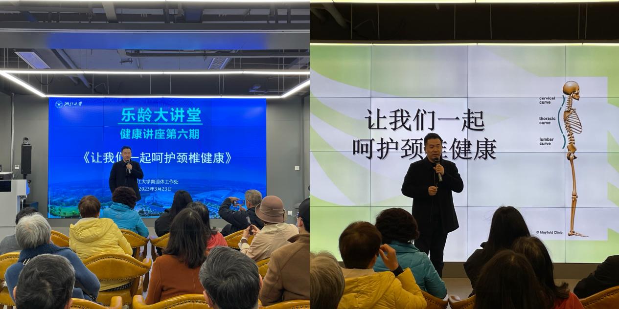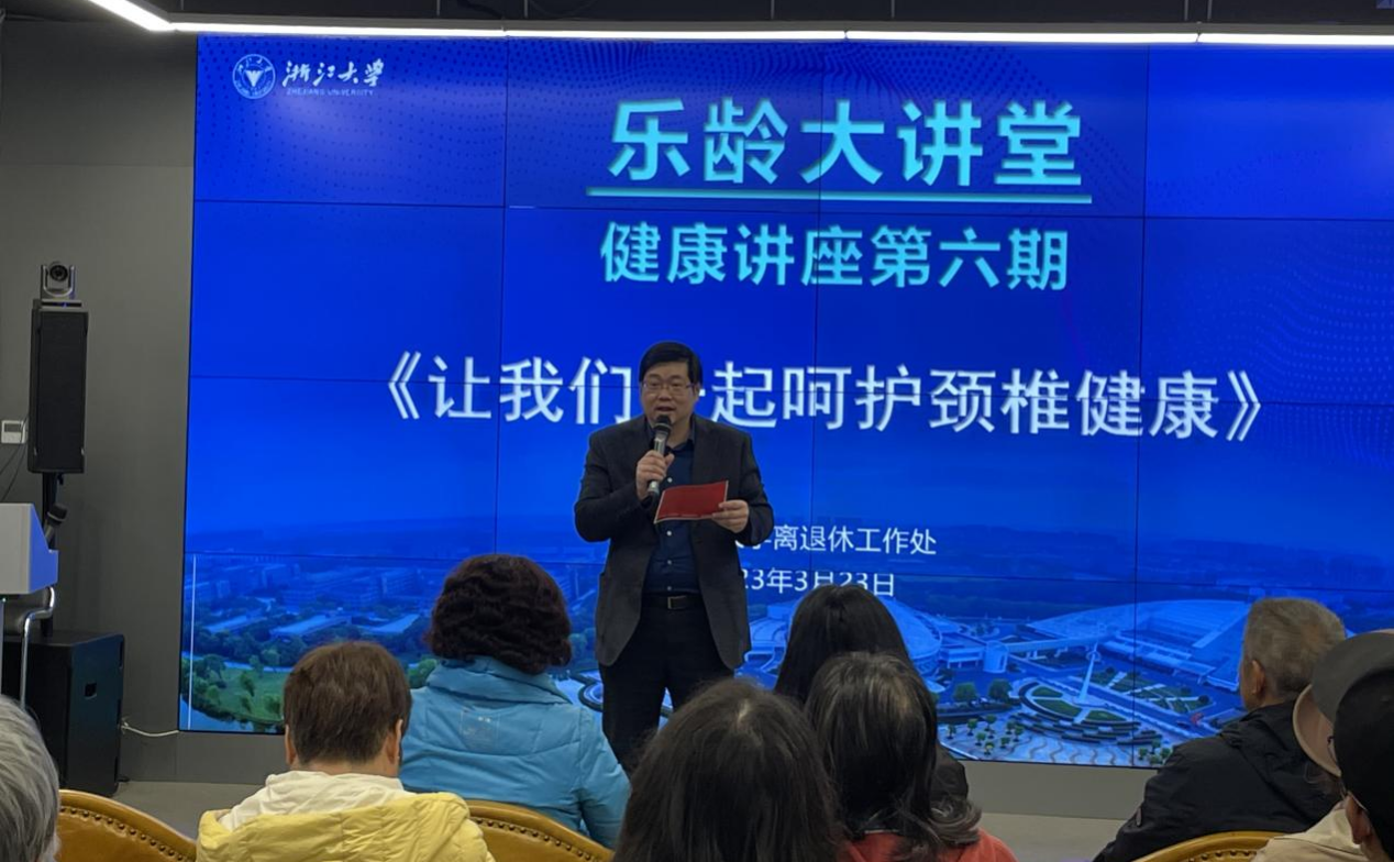 为加强老年健康知识宣传和教育,提升老年人健康素养,浙江大学离退休工作处特别开设“乐龄大讲堂”系列健康讲座。3月23日上午,我处邀请到浙江大学医学院附属第二医院脊柱外科专家张桦为学校离退休人员讲解颈椎健康相关知识。讲座由离退休工作处专聘副处长杨正明主持,近20位退休老同志现场参加了健康讲座。