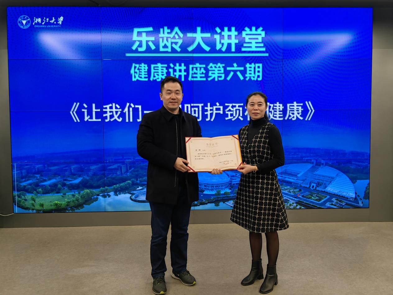 讲座结束后,离退休工作处副处长施云为张桦颁发了荣誉证书,并对他表示了感谢。