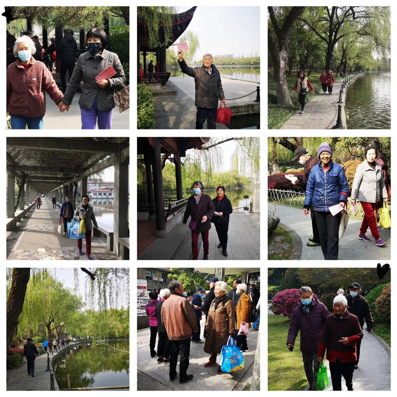 在华家池已有良好口碑的“银耀华家池”志愿者不仅承担了活动人员登记、纪念品发放等工作,还在叉路口、池塘边和人员集中处安排人员值守,搀扶行动不便的老同志。志愿者的工作得到了大家的交口称赞。