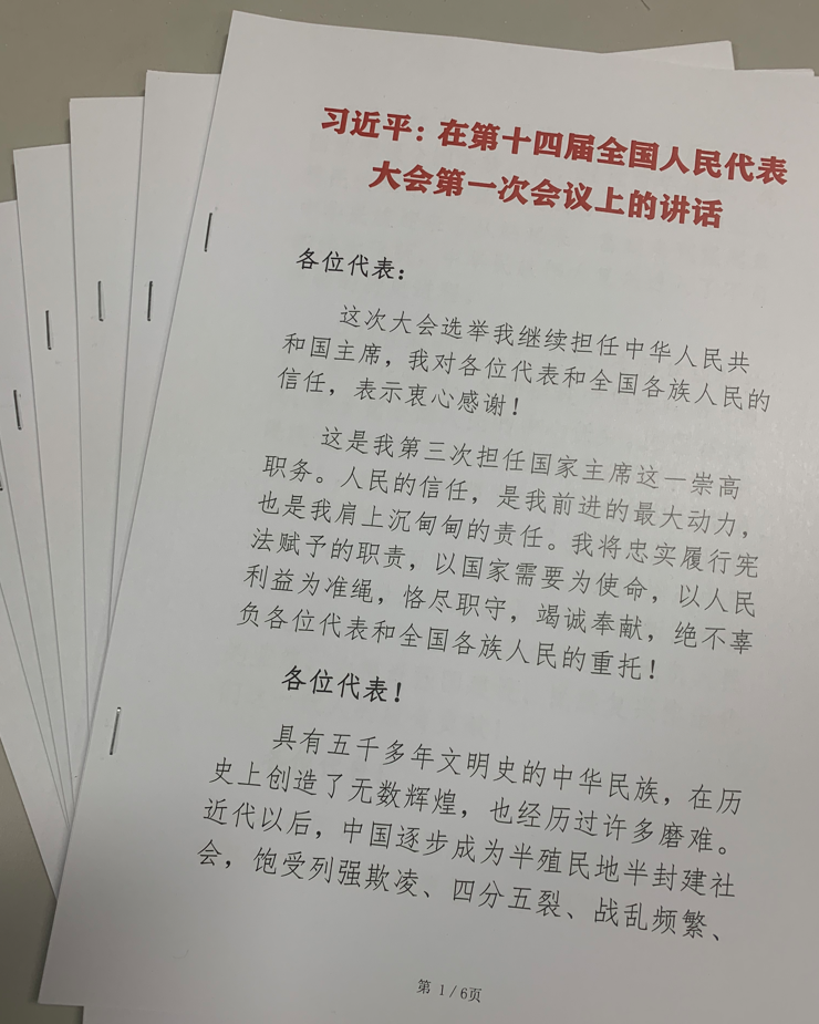 今年春天为离休干部们的第一轮送学到家、送学到医院活动,有着鲜亮的特点、鲜明的主题:紧紧围绕着传达贯彻十四届全国人大一次会议、全国政协十四届一次会议精神展开。从3月中旬新一轮送学活动启动以来,习总书记在全国人大一次会议闭幕式上的讲话,以及校报关于两会的内容,深受老党员老干部们的欢迎。西溪中心专门用大号字体印制了习总书记的讲话稿,送学到家、到医院期间,方便老人家们阅读和一对一讨论。健全社保体系下一步的亮点会在哪,杭城民生兜底工作会出点啥新精彩,现代化成果如何惠及全体、落地惠老。相信祖国越来越强大!习近平总书记的讲话令人鼓舞,催人奋进!大家说的兴致勃勃。抗住了一轮新冠疫情,社会面放开,医院的房门有序打开,老人们喜滋滋感谢医护、评论医疗,也诉说着同海内外各地归来的子女、孙辈再次团聚的盛况。