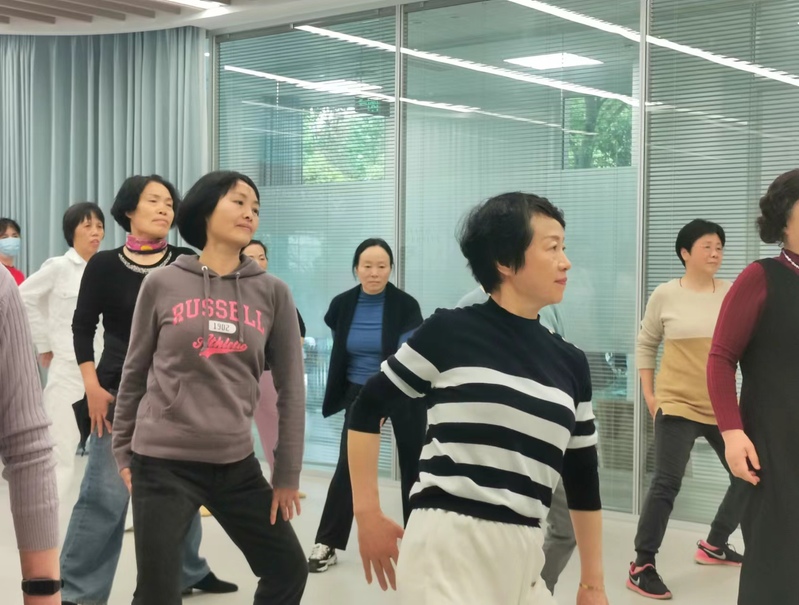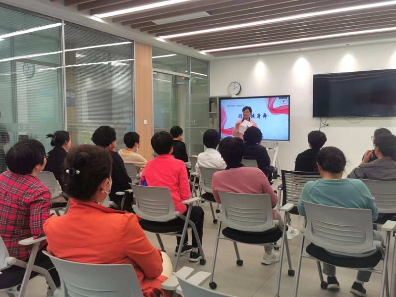沙龙以“讲座+实践”的形式与老师们互动开展,卢老师首先介绍了形体健身舞的来源和组成形式,又针对中老年女性群体的身体特征指出了运动健身的注意事项,以及日常体态提升和气质锻炼的技巧。齐聚在新改建的紫金港退休教职工活动室里的老师们跃跃欲试,在卢老师的带领下,跟随着欢快的音乐舞动肢体,活动室里气氛欢乐,反响热烈。现场听到最多的声音就是:“出汗了,出汗了”,“跳完了好开心!”,“有一点点累,但是很美呀!”结束后老师们纷纷表示这样的课是她们最喜欢的,不跑不跳,塑形美体,动感又活力。