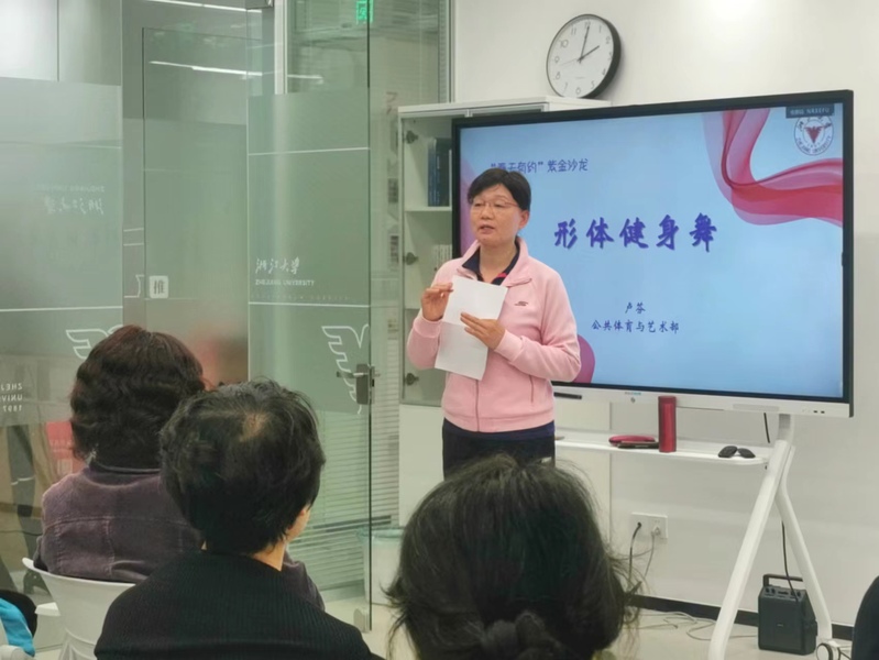 4月11日下午,紫金港管理服务中心在白沙综合楼108室举办“春天有约”紫金沙龙活动,公共体育与艺术部卢芬老师为老同志带来一场生动的《形体健身舞》讲座。讲座吸引了来自玉泉、华家池、西溪、紫金港等各个校区的近30位退休老师们积极参与。