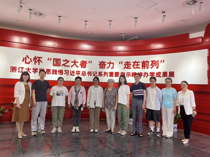 在党委宣传部副部长楼艳老师讲解带领下,党建馆宣讲团离退休教师代表和学生代表一同参观展览,实地集体备课。浙江大学党建馆位于学校地标建筑求是大讲堂由“红船起航主题展”和“心怀‘国之大者’ 奋力‘走在前列’——浙江大学学思践悟习近平总书记系列重要指示精神办学成果展”构成,突出思想性、紧扣主旋律、营造现场感。“红船起航主题展”与南湖革命纪念馆共建,将红船精神引入校园,是学校开展“四史”教育的重要载体。“心怀‘国之大者’ 奋力‘走在前列’——浙江大学学思践悟习近平总书记系列重要指示精神办学成果展”,系统梳理了习近平总书记关于世界一流大学建设的重要论述,全面重温了习近平总书记关心指导浙江大学的历程,深入总结了20年来学校取得的办学成就,特别是学校第十四次党代会以来的改革发展经验,全景呈现了浙大师生心怀“国之大者”、奋力“走在前列”的生动实践。