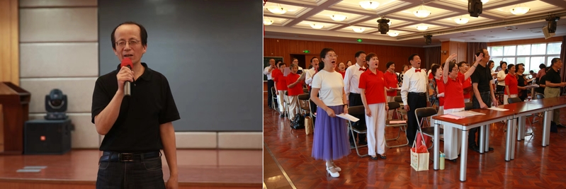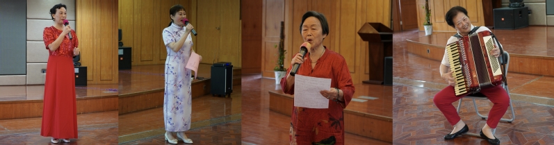 迎亚运,唱欢歌!2023年6月20下午,浙江大学老年大学玉泉分校声乐班举办了2023学年上学期的汇报演出。声乐班60多名学员欢聚一堂,大家以小组唱,独唱和大合唱的形式演绎了声乐指导老师郑晓杭在本学期教学的七首新歌。另外还有男声小组唱《少林,少林》,女声小组唱《相逢是首歌》、越剧演唱《金玉良缘》和舞蹈《沂蒙颂》,声乐班的旗袍队还展示了旗袍秀《咱老百姓》,郑晓杭老师则给我们演奏了手风琴曲《花儿与少年》,最让人感动的是87岁的老班长吕思菊老师充满激情地演唱了难度极高的京歌《我爱你中国》。整个汇报演出精彩迭出,充满了欢乐祥和的气氛。