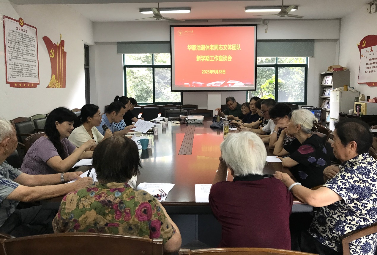 华家池退休老同志各文体团队负责人分别介绍了队伍建设情况、新学期工作计划,以及所面临的招生、场地、经费等方面的现实困难和相关问题。大家一致表示,在2023-2024学年秋冬学期,各文体团队将继续在学校指导下,安全有序组织开展各项文体活动,为丰富离退休老同志精神文化生活,实现老有所为和老有所乐贡献力量。