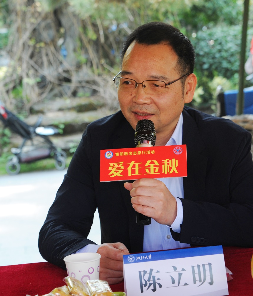 陈立明副处长在讲话中谈到,久久重阳节是“中国老人节”,是弘扬敬老爱老中华传统美德的重要节日。他首先向与会老同志表示衷心的节日祝福,祝福大家身体健康,福寿绵长。同时向为构建华家池和谐有爱敬老助老氛围的华家池校区管委会、华家池社区等兄弟部门和“银耀求是园·华家池”志愿者服务队、华韵舞蹈队等团队所付出的辛勤努力表示感谢,并介绍了华家池管理服务中心的为老服务工作。围绕下一步工作重点,他强调,要继续贯彻落实《中共中央 国务院关于加强新时代老龄工作的意见》精神,坚持“积极老龄观,健康老龄化”,深化“一人一策”结对帮扶,开展“一类一策”关爱行动,用心用情,精准服务,并向与会人员介绍了《一人一策、一类一策独居老人关爱帮扶行动细则》《校园-社区双关心双关爱联动机制》十项行动。