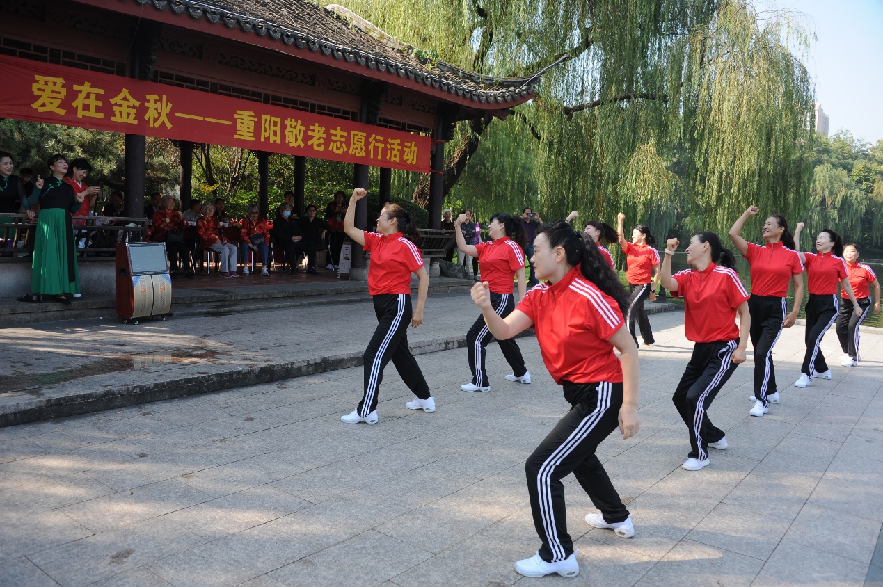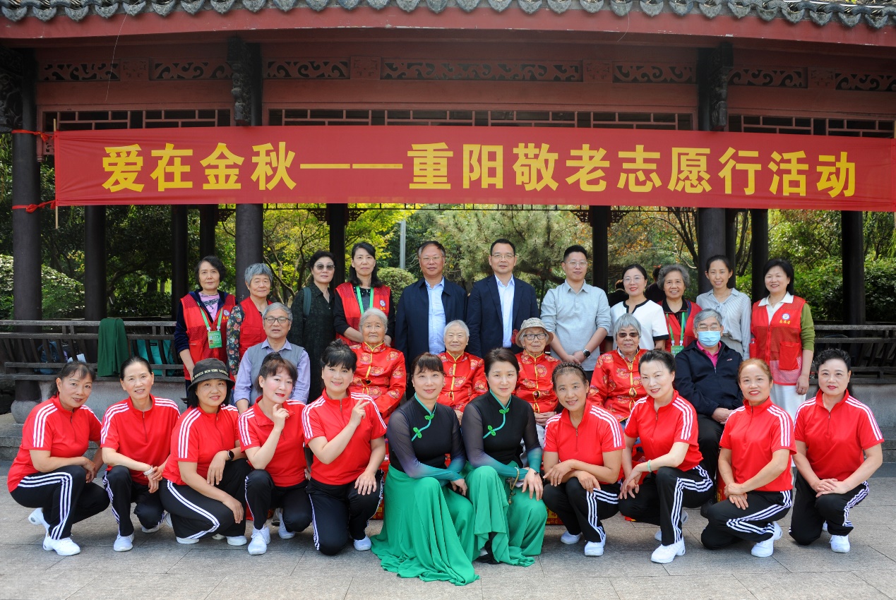 清晨的桂花亭丹桂飘香,前来的与会者神采飞扬。活动在华家池华韵舞蹈队开场舞《同爱同在》和民舞《游牧时光》中拉开序幕。身着大红唐装的老同志情不自禁跟随着动感的音乐律动起来,大家沉浸在欢乐、友爱的氛围之中。