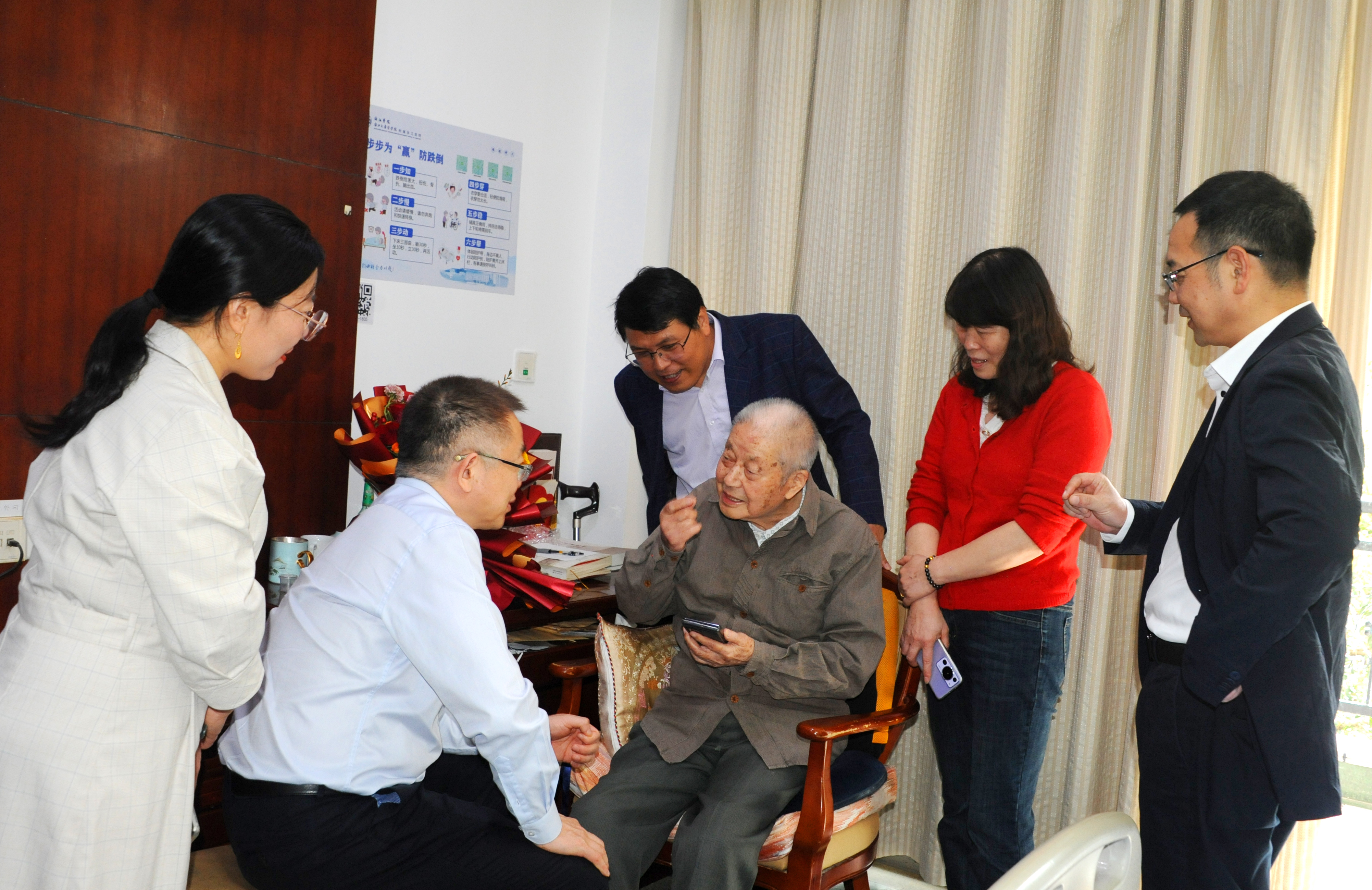 秋来又重阳,情系桑榆晚。10月18日上午,校党委副书记傅强带队上门看望浙大百岁老人代表陈子元老师。傅强详细询问了陈老的日常起居和身体情况,在亲切交谈中表达了学校对百岁老人的问候和祝福,并送上了鲜花和慰问金,叮嘱陈老多多保养身体。