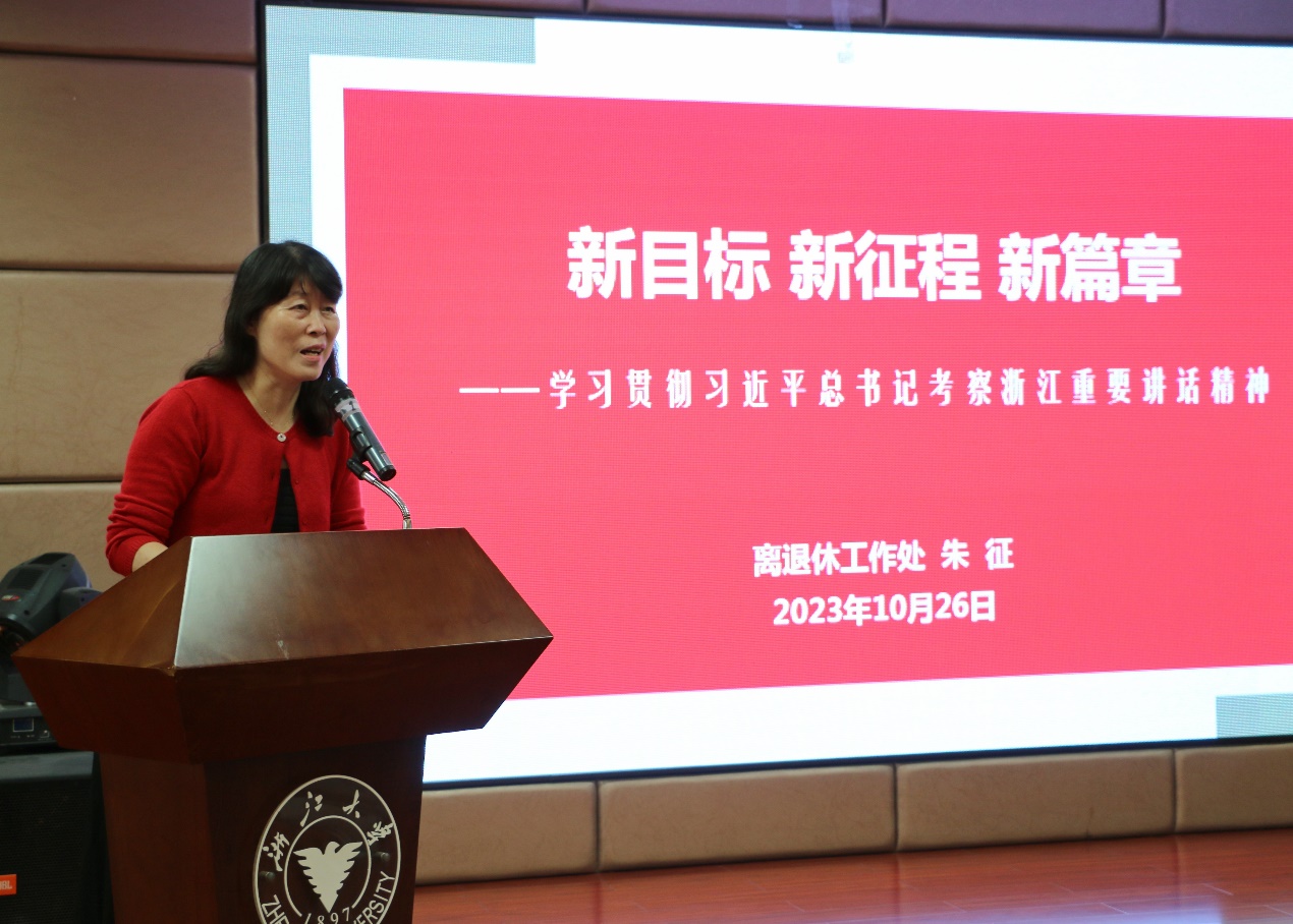 为深入学习贯彻习近平总书记考察浙江重要讲话精神,积极响应学校党委关于学习贯彻习近平总书记考察浙江重要讲话精神的通知,10月26日上午,浙江大学控股集团离退休党支部召开学习交流会,本次会议由离退休工作处张金钟同志主持。会议邀请了离休党工委书记、离退休工作处处长朱征作题为《新目标、新征程、新篇章——学习贯彻习近平总书记考察浙江重要讲话精神》的主题演讲。控股集团15个党支部的支部书记、支委和联络员等老同志骨干共52人参加本次会议。