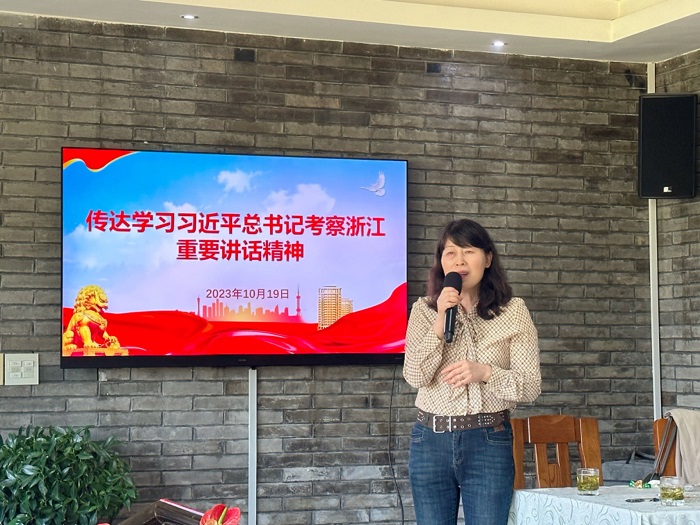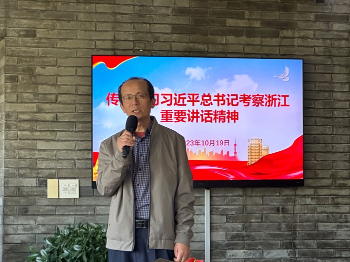朱征带领大家学习了习近平总书记考察浙江重要讲话精神的主要内容,并分享了自己的学习体会。习近平总书记的重要讲话,赋予了浙江“中国式现代化的先行者”的新定位和“谱写中国式现代化浙江新篇章”的新使命,又一次在关键节点上为浙江指路引航,对浙江走好奋进征程作出了战略考量和战略定位,指引我们在奋进中国式现代化新征程上勇当先行者、谱写新篇章,持续推动“八八战略”走深走实。
