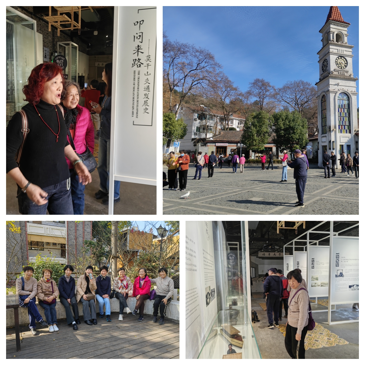 志愿者一行来到莫干山民国风情小镇,实地参观莫干山交通历史展馆、庾村广场等地。近几年,莫干山镇依托清秀的自然环境与深厚的文化底蕴,充分挖掘地域特色文化,全力打造莫干山门户。漫步在庾村的老街之上,映入眼帘的是一排排青砖拱券,带有人情温度的老式建筑。在广场喂鸽子,在老店前合影,此刻都已成为沉淀时光的载体,让人看着不由得心生恬静、安逸美好。