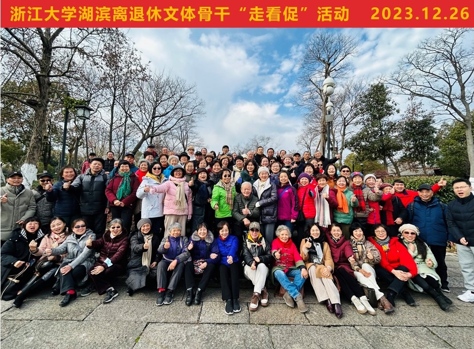 2023年12月26日,浙江大学湖滨离退休文体骨干“走基层、看变化、促发展”活动在湘湖顺利开展。近百名骨干老同志踏着冬日暖阳,来到风景如画的湘湖三期,在秀丽山水之间,赏湖茗茶,交流畅谈。