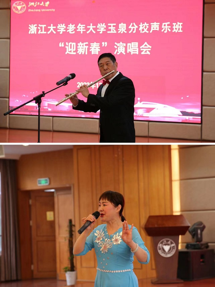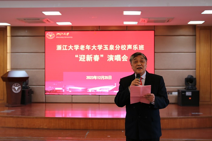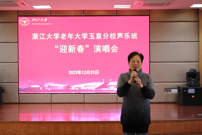 2023年12月25下午,浙江大学老年大学玉泉分校声乐班在玉泉校区教工活动中心隆重举行迎新年新春演唱会。离退休工作处副处长韩东晖、玉泉分校校长卢绍宽、副校长王萍、吕思菊、离退休工作玉泉管理服务中心主任俞文胜、副主任齐璐等参加活动。