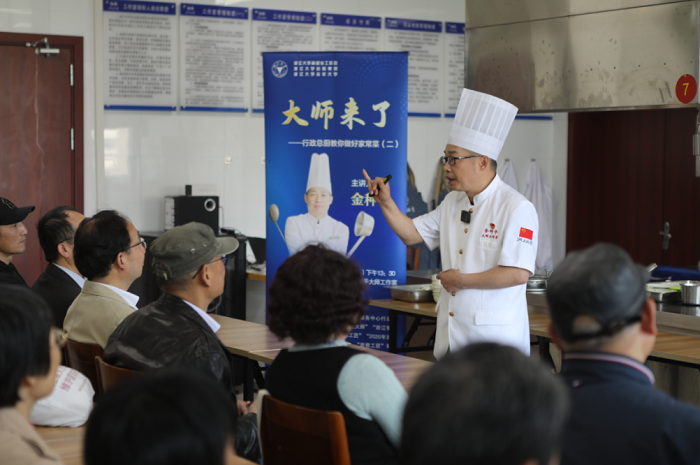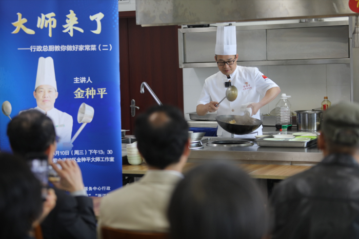 4月10日下午,浙江大学老年大学”大师来了——行政总厨教你做家常菜”第二期如期开课。课程受到了我校退休教职工的热烈欢迎和积极参与。