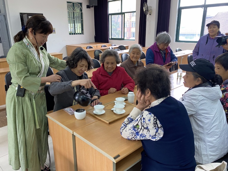 授课老师和几位老同志均穿着中国传统服饰,将传统服饰文化和茶艺文化充分结合起来,既丰富了老同志文化生活,也是对中华优秀传统文化的传承和发扬。