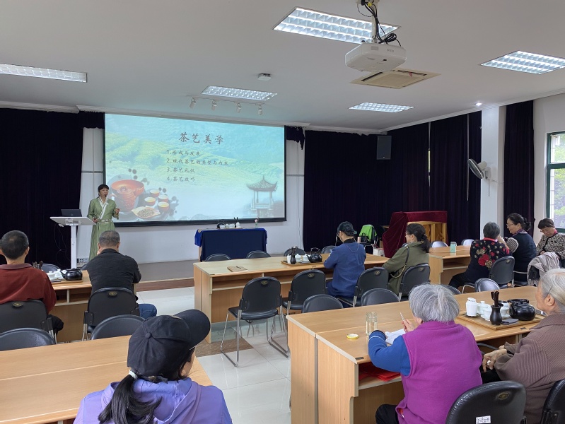 华家池管理服务中心特邀请农业生物技术学院茶学系退休教师朱晓玲作为本期讲座嘉宾为老同志授课。朱老师自1990年起从事茶艺教学及培训工作,曾获浙江大学优秀社团指导老师称号。