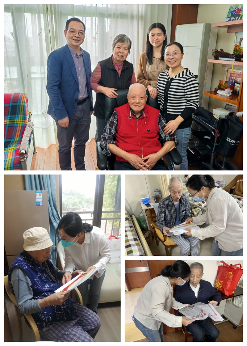 离休党工委副书记陈立明向每一位离休干部传达学习贯彻习近平总书记关于党纪学习教育的重要讲话和重要指示精神。每到一处,中心工作人员都详细了解离休干部的生活起居和身体情况,送上组织的关心和祝福。