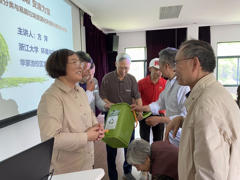 为切实满足离退休老同志多元养老需求,进一步提升老同志的生活品质,5月8日上午,浙江大学“银耀初心大讲堂”第九期垃圾分类与易腐垃圾资源化利用科普知识讲座在华家池校区常青楼三楼举行。讲座由华家池管理服务中心主任陈会贤主持,20余位老同志积极参加。