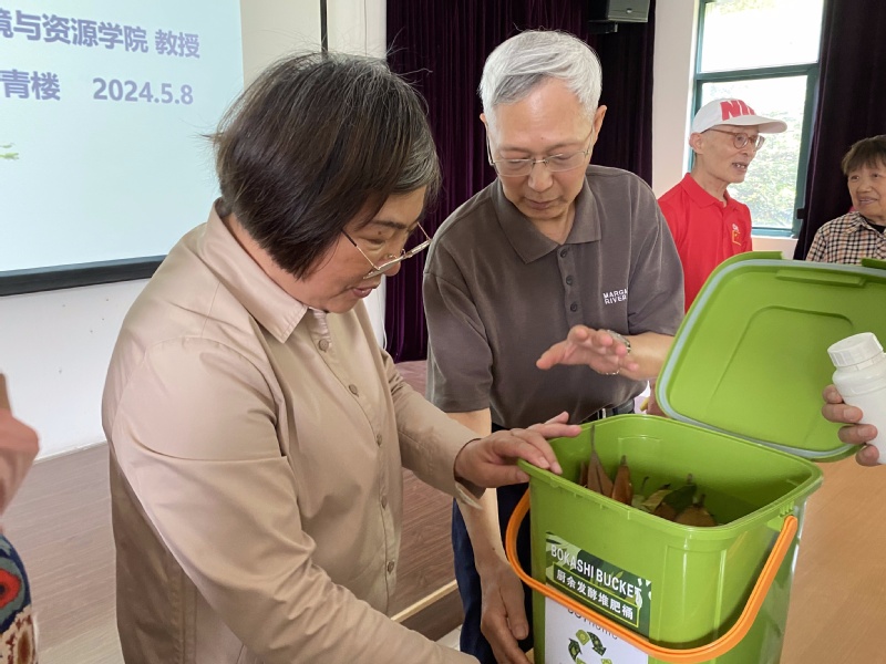 “垃圾是放错地方的资源”,方萍老师首先为参加讲座的老同志介绍目前我国垃圾分类的现状及实施的迫切性,及易腐垃圾常见的几种生物处置利用方式。最后着重讲解了易腐垃圾的堆肥化处置原理和堆肥相关的技术研发成果。老同志被新鲜的知识吸引,还认真做了笔记。