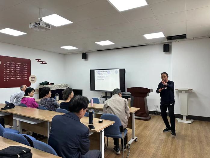 5月13日上午,浙江大学老年大学玉泉分校在玉泉教工活动中心一楼举办太极养生公益讲座,特邀学校公共体育与艺术部退休副教授、长期在浙江省老年大学任教的季守祥老师与众多太极拳爱好者分享交流。