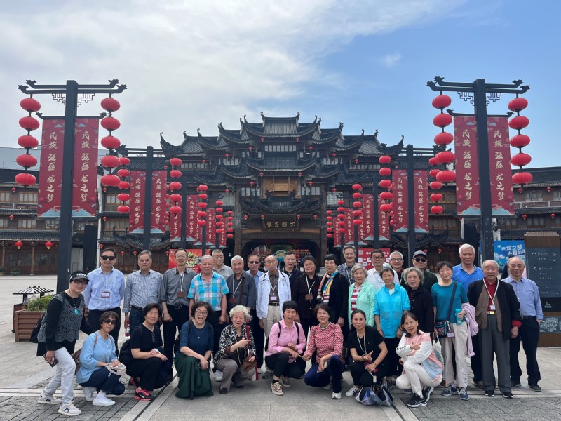 当天下午,老同志们坐车前往太湖畔的太湖古镇。太湖古镇作为一处文化设施,其建筑大多数都是按照江南水乡建筑风格修建,充分展现了江南水乡的韵味。老同志们用脚步丈量文化,在古色古香的中式传统建筑中,体会到了满满的文化自信。