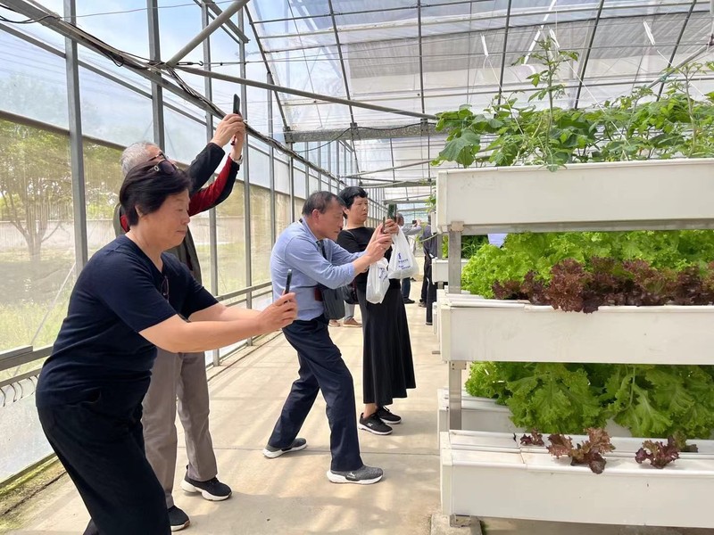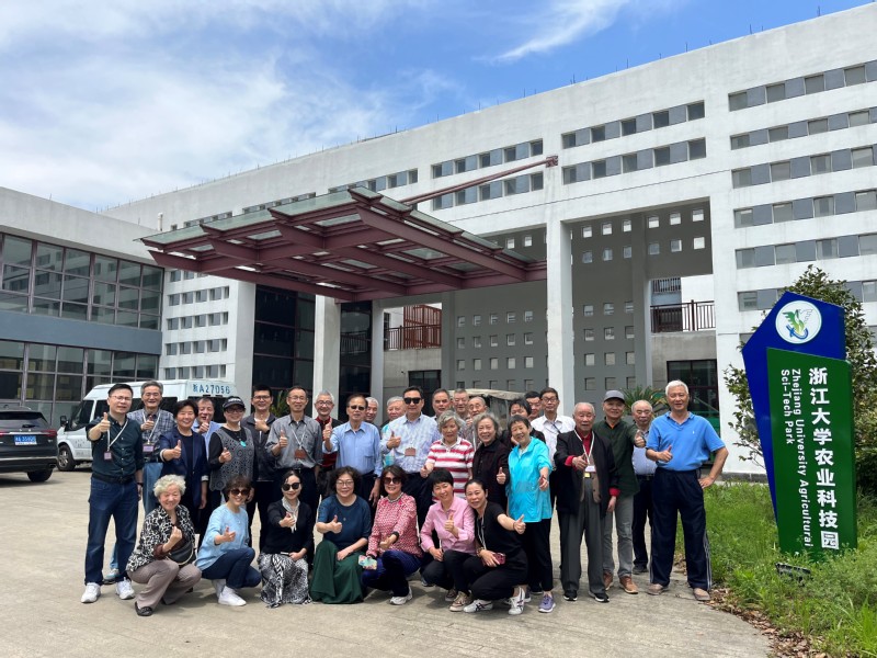 活动的首站是浙江大学农业科技园,该科技园是浙江大学-湖州市合作共建省级社会主义新农村实验示范区,园区占地面积1145亩,建有综合大楼8186平方米,植物工厂3000平方米,标准连栋大棚10000平方米等设施,目前已建成为国家级农业科技园区核心区、国家农业科技创新与集成示范基地、全国科普教育基地、国家农业转基因生物试验基地、浙江省和教育部野外科学观测研究站等。老同志们在园区饶有兴致地参观大棚蔬果,对新时代我校在农业科技方面取得的创新成果赞赏不已。