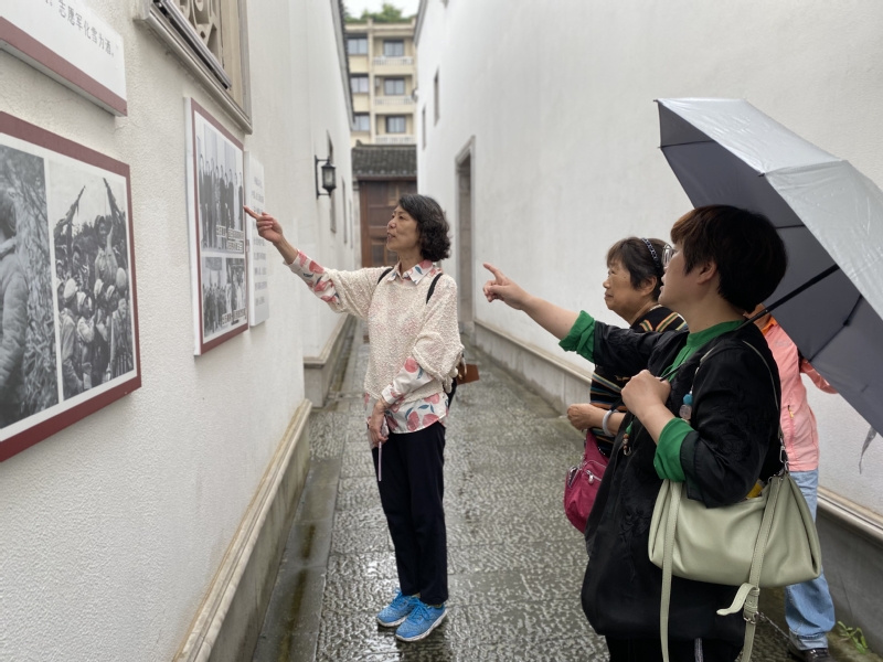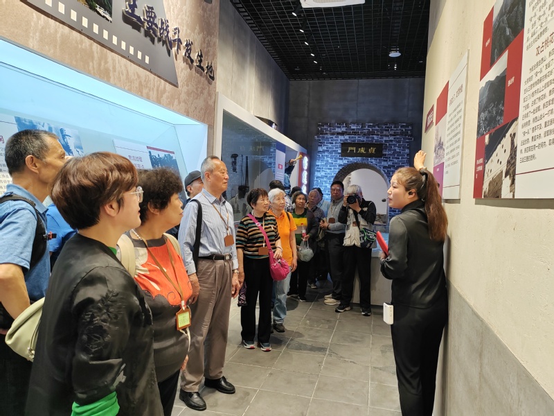 最后,老同志骨干参观了新登战役纪念馆。“1945年5月,新四军攻打新登县城,并于6月解放新登。在战役中,苏浙军区第一纵队第一支队200多位新四军指战员牺牲。”讲解员慷慨激昂地为我们讲解新登战役的史实,老同志们怀着对先烈的崇高敬意认真听着讲解,对这段历史有了更深的了解。