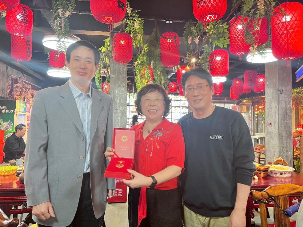 午饭时间,大家围坐在一起,一边品尝美食,一边交流着近期生活的点滴,分享着这次见面的喜悦。饭后,学院党委李文腾副书记为何冬梅、陈兴浓两位老同志颁发了“光荣在党50年”奖章。这份奖章,是对两位老同志长期以来为党和人民教育事业贡献力量的高度肯定,也是对在场年轻党员的一次深刻教育和激励。