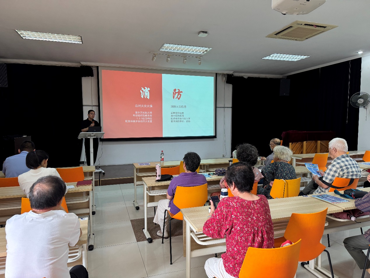陈青老师通过视频、图文的方式,清晰讲解了十大家庭火灾安全隐患的识别与排查方法,以及火势无法控制时的正确逃生技巧。他还以真实案例为切入点,生动展示了电动车违规室内充电、不遵守交通规则可能引发的严重危害,一个个触目惊心的具体事件发人深省,在老同志们心中留下深刻印象。