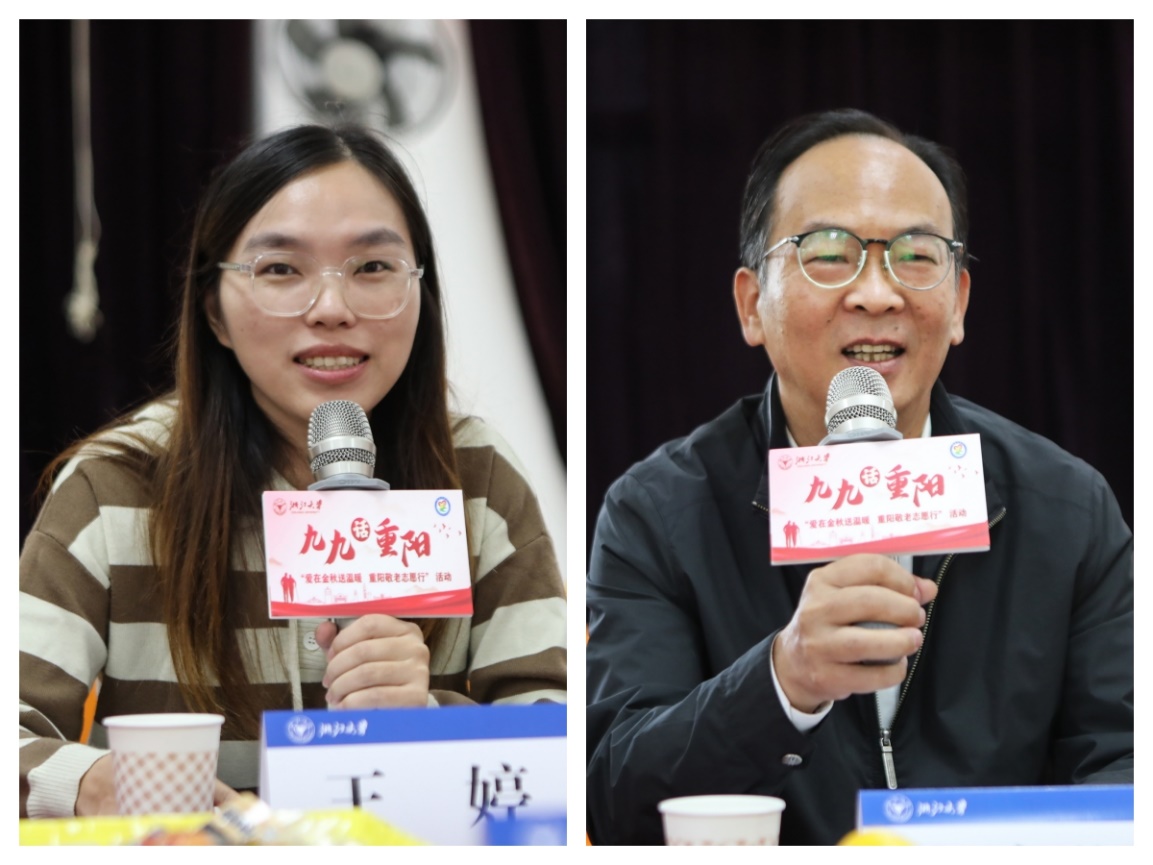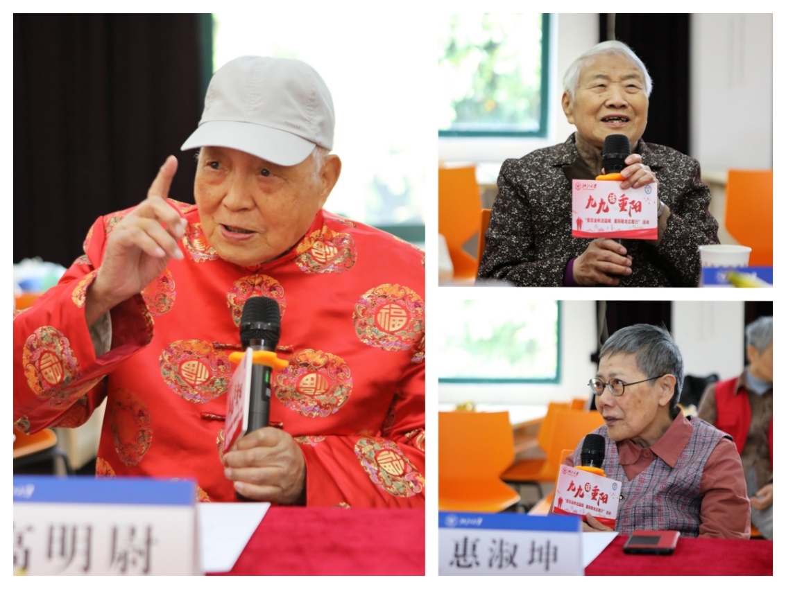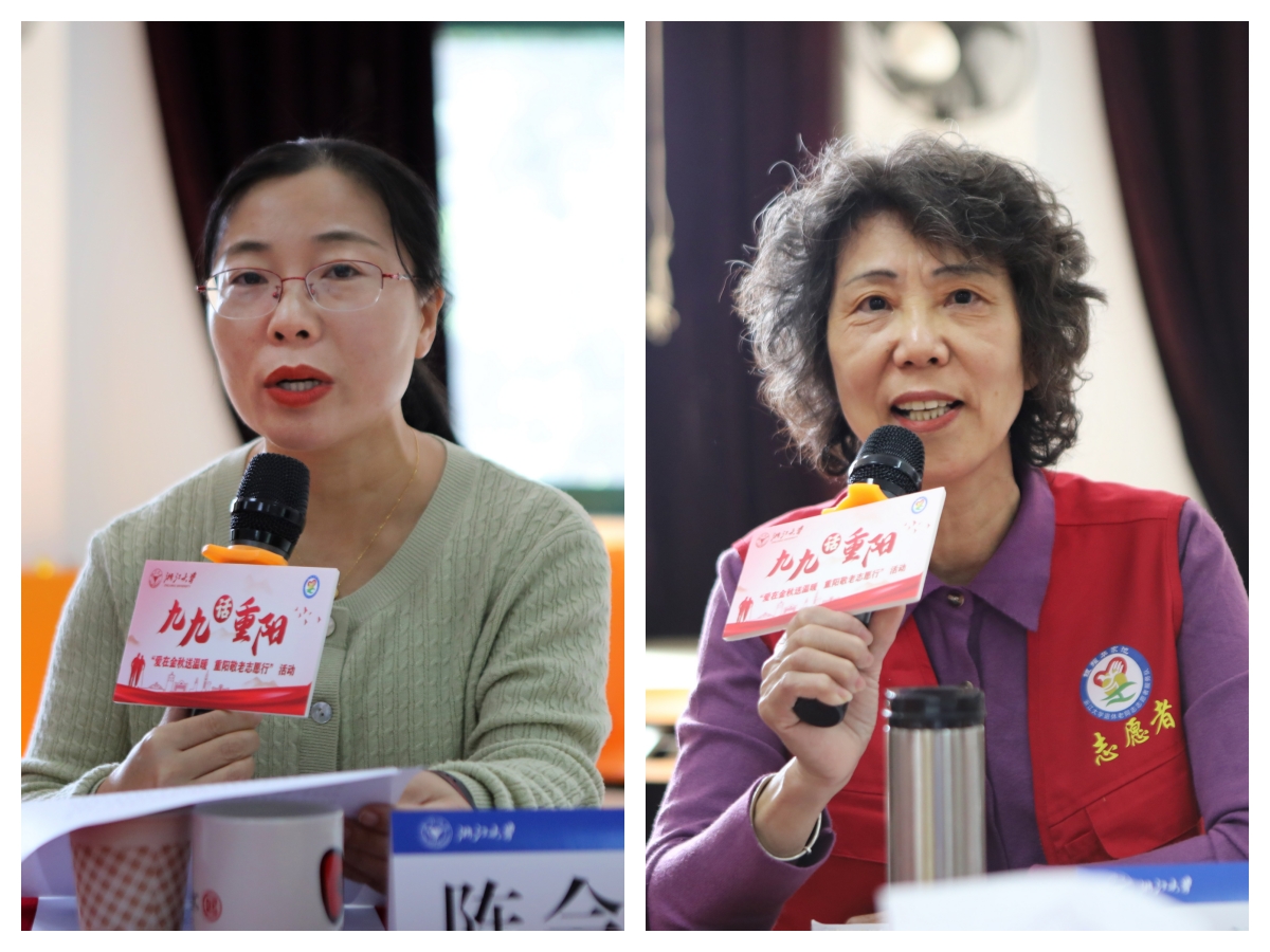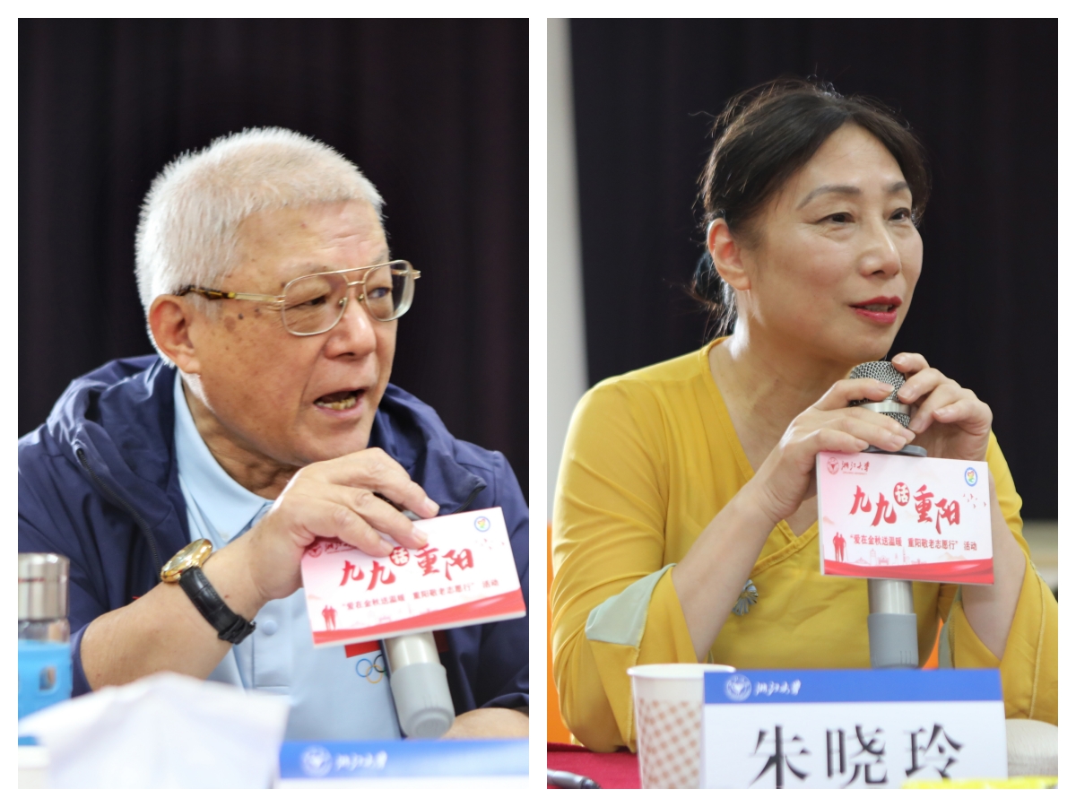 “我今年102岁啦,1945年考入浙江大学农学院,是抗战胜利的那一年,来到华家池整整80年了,对这里很有感情。”作为最早一批来华家池报道的学生,离休干部高明尉见证了学校的发展与变迁,深情分享了从学生到老师的文脉传承。老同志代表金中仁、朱晓玲谈到,温暖的志愿队伍、活跃的文体团队与强有力的组织保障为华家池的老同志构建了温暖的大家庭。同时也希望更多的老同志积极参与学校及社会的各类活动,持续贡献“银发力量”。被结对帮扶的老同志陆续讲述了他们与志愿者之间的暖心故事,令在场人员十分动容,他们也纷纷感谢离退休工作处的关心关爱。