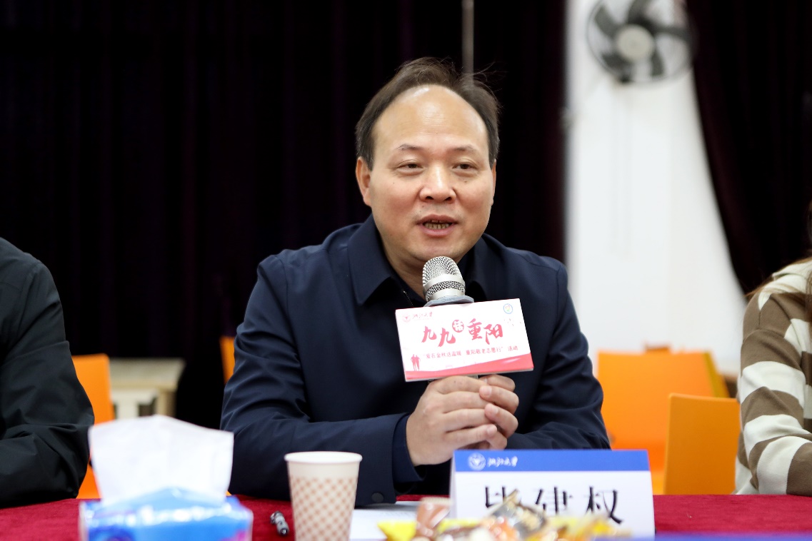 毕建权作总结发言,他首先向老同志们送上了重阳祝福,表示参加本次重阳敬老活动感触颇深。毕建权强调,老同志是校园文化传承的宝贵财富,他们见证了学校的发展建设,离退休工作处将持续做好服务保障工作。今年是抗战胜利八十周年,开展此次重阳敬老活动,不仅体现了学校对老同志的关心与关爱,更体现了铭记历史、尊重历史和传承历史的责任担当。当前在学校谋划“十五五”发展规划的关键节点上,也希望老同志们继续关心学校的发展,凝聚“银发力量”。
