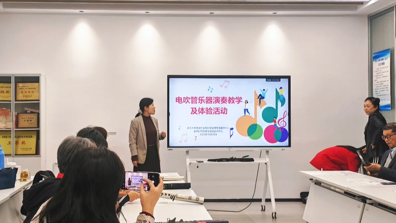 金秋十月,丹桂飘香。10月24日下午,我校离退休工作处在紫金港校区举办了一场别开生面的电吹管演奏体验活动,吸引了众多热爱音乐的离退休教职工积极参与。活动由紫金港管理服务中心承办,离退休工作处副处长柴斐出席活动并致辞,中心主任张晓亮主持。