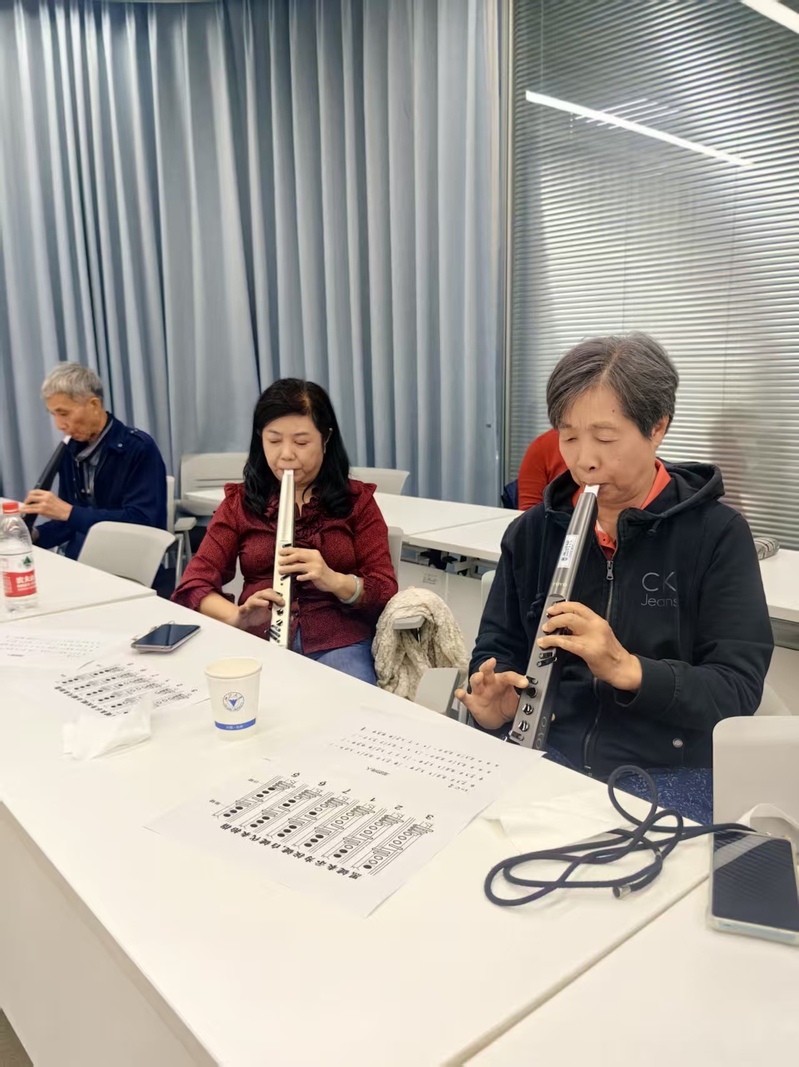 在实践环节,老同志们热情高涨,纷纷使用一次性吹嘴进行吹奏练习。在老师的专业指导下,大家很快掌握了基本演奏技巧。活动最后,全体参与者共同演奏了经典曲目《龙的传人》,悠扬的旋律回荡在活动现场。参加活动的老同志们纷纷表示:“没想到这么快就能演奏出完整的曲子,真是太有成就感了!”“第一次接触这种乐器,既新奇又有趣。”“这样的体验活动形式新颖,内容丰富,希望以后能多举办。”