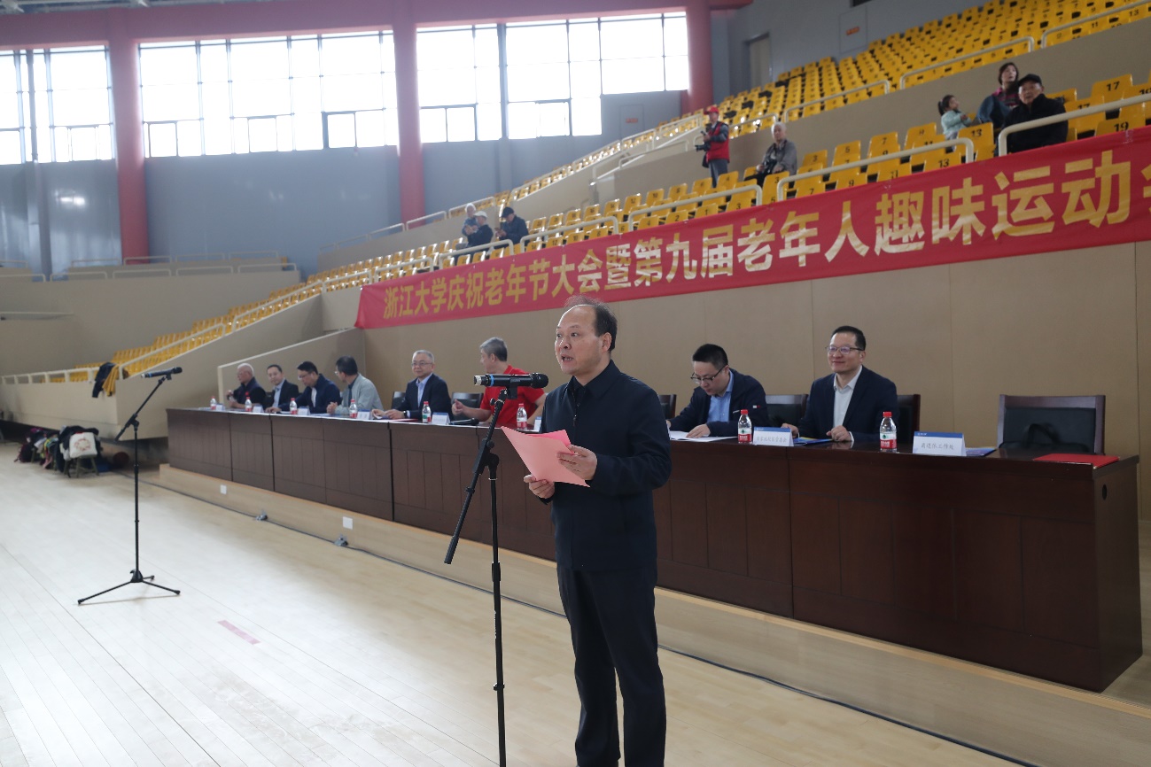 “我宣布,浙江大学庆祝老年节大会暨第九届老年人趣味运动会正式开幕!”老年人体育协会主席胡征宇正式宣布开幕。