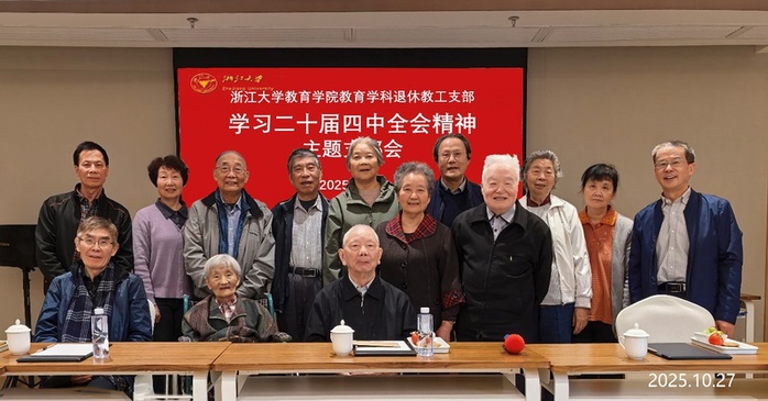 10月27日,教育学院教育学科退休教工党支部在杭州太保家园颐养社区组织开展“学习党的二十届四中全会精神”主题党日。支部十余位党员参与活动并探望了在社区疗养的支部老党员、97岁的金锵老师。