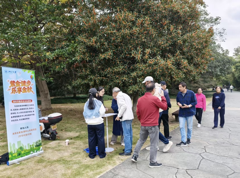 11月4日下午,启真湖畔,桂香扑鼻,风英点点秋晴。六百余名老同志陆续来到校园参加紫金港重阳节健步走。活动由紫金港管理服务中心组织举办,紫金港退休志愿者参与活动服务。