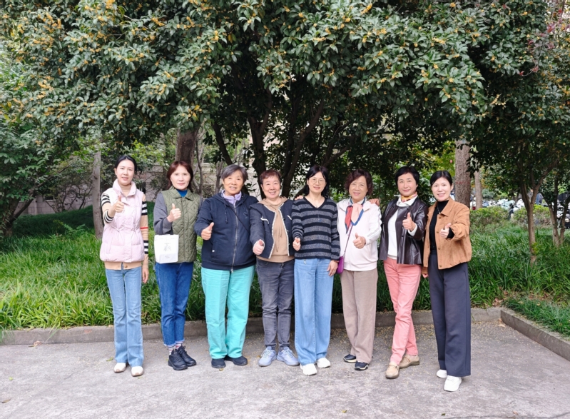健步走路线的起始点就在一棵盛放的丹桂树下,满树桂花成为最动人的背景。老同志们或驻足留影,将满园秋色与盈盈笑意定格;或执手寒暄,在缕缕桂香中叙别情。他们精神矍铄的步伐、灿烂如菊的笑容,为秋日的校园增添了最温暖的风景。