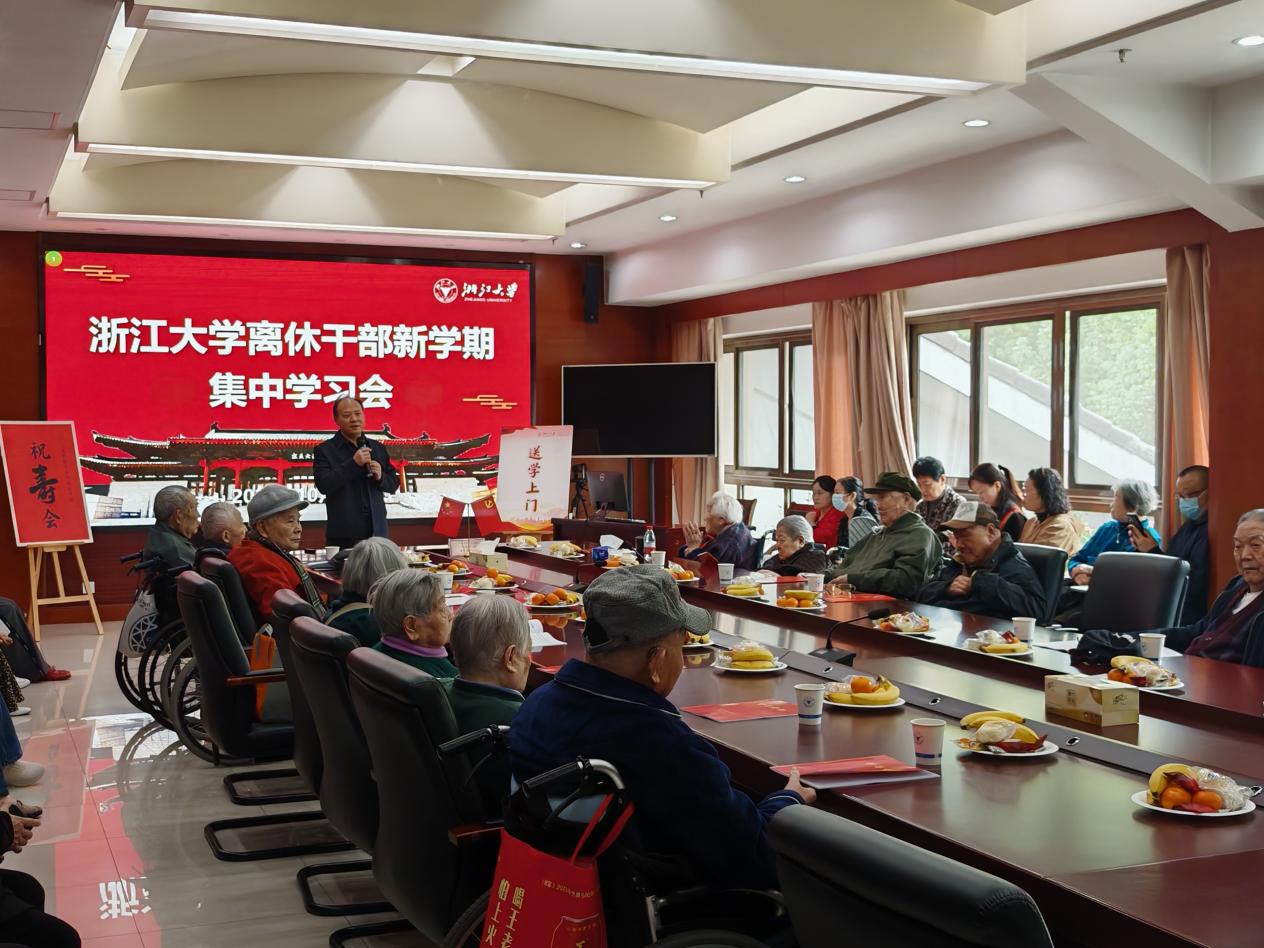 2025年10月下旬,学校先后在浙江医院灵隐院区、浙江省人民医院望江山院区、杭州昊泰妇儿医院三地召开离休干部新学期集中学习会。离退休工作处处长兼离休党工委书记毕建权领学,三十余位离休干部参会。