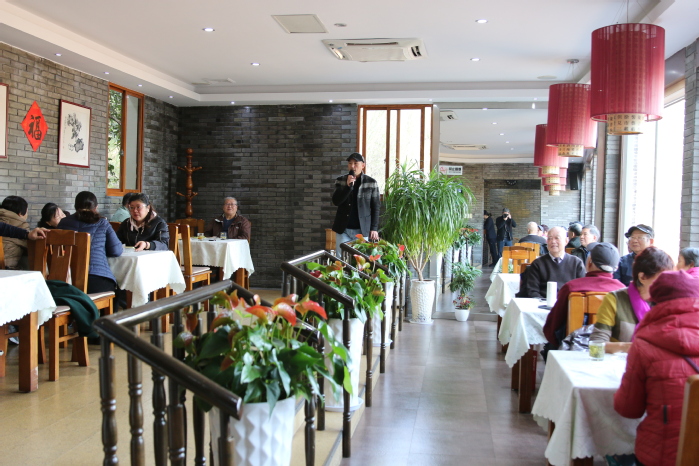 江南初冬时节,西湖边林木斑斓,红枫与湖光、古建相映成趣,明鉴楼内气氛热烈而温馨,老同志们脸上洋溢着笑容,彼此热情问候,纷纷入座。他们虽已退休,但精神矍铄,言谈间透露出对生活的热爱和对学校发展的关心。