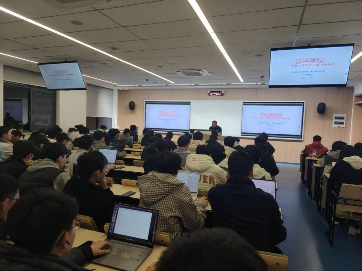 交流尾声,许教授以习近平总书记“中国教育是能够培养出大师来的”这一论断勉励同学们。他强调,文化自信是根本的自信。中国高等教育的崛起,不仅需要排名指标的提升,更需要扎根中国大地、融通中外学术、承载文化主体性的办学自觉。作为浙大学子,应当拥有“从泉水到江水再到海水”的格局,将个人奋斗融入学校发展和国家战略,在回答“李约瑟难题”与“钱学森之问”的征程中,成为兼具家国情怀、全球视野和创新能力的时代新人。