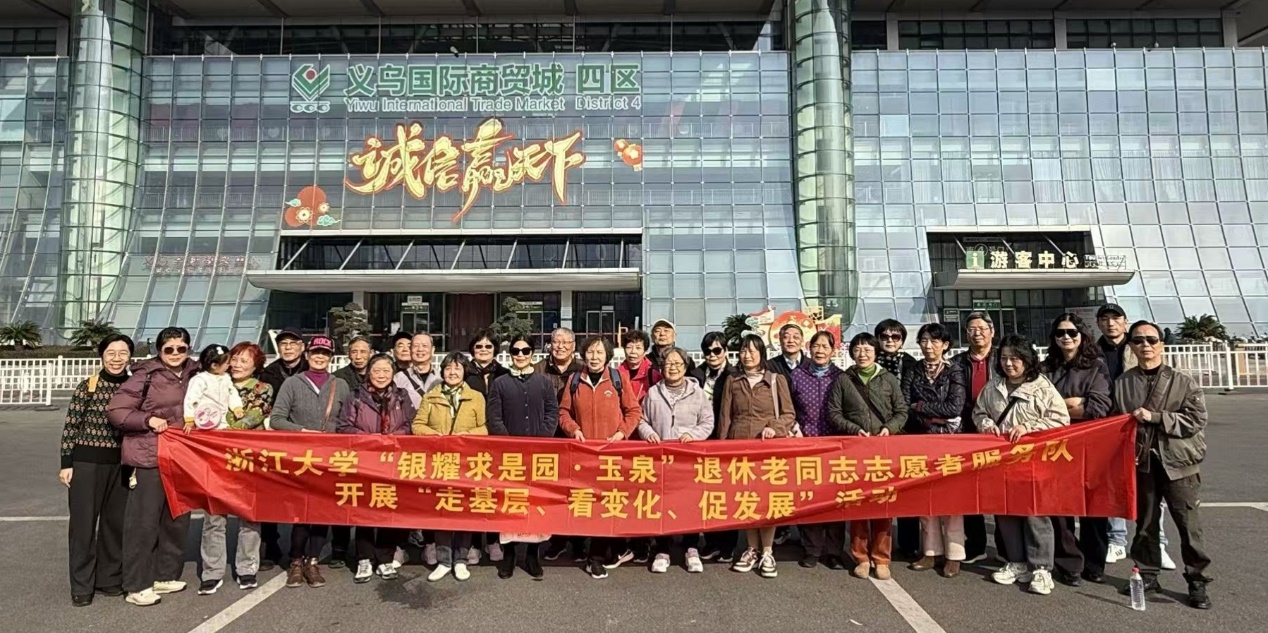 12月11日,浙江大学“银耀求是园・玉泉”退休志愿者服务队赴“世界小商品之都”义乌开展“走、看、促”活动。志愿者们走进义乌国际商贸城,探访数字贸易创新场景,对话商户创业者,在实地走访中感受改革开放前沿阵地的蓬勃活力。活动由离退休工作处玉泉管理服务中心精心组织,中心主任俞文胜及工作人员全程陪同参与,从行程规划、交通协调到现场引导、健康保障等方面细致部署,为志愿者的走访调研筑牢后勤支撑。