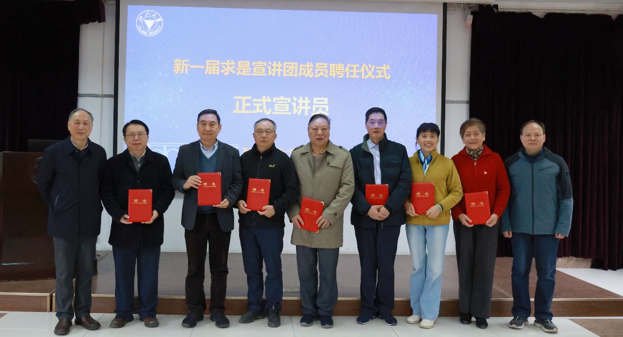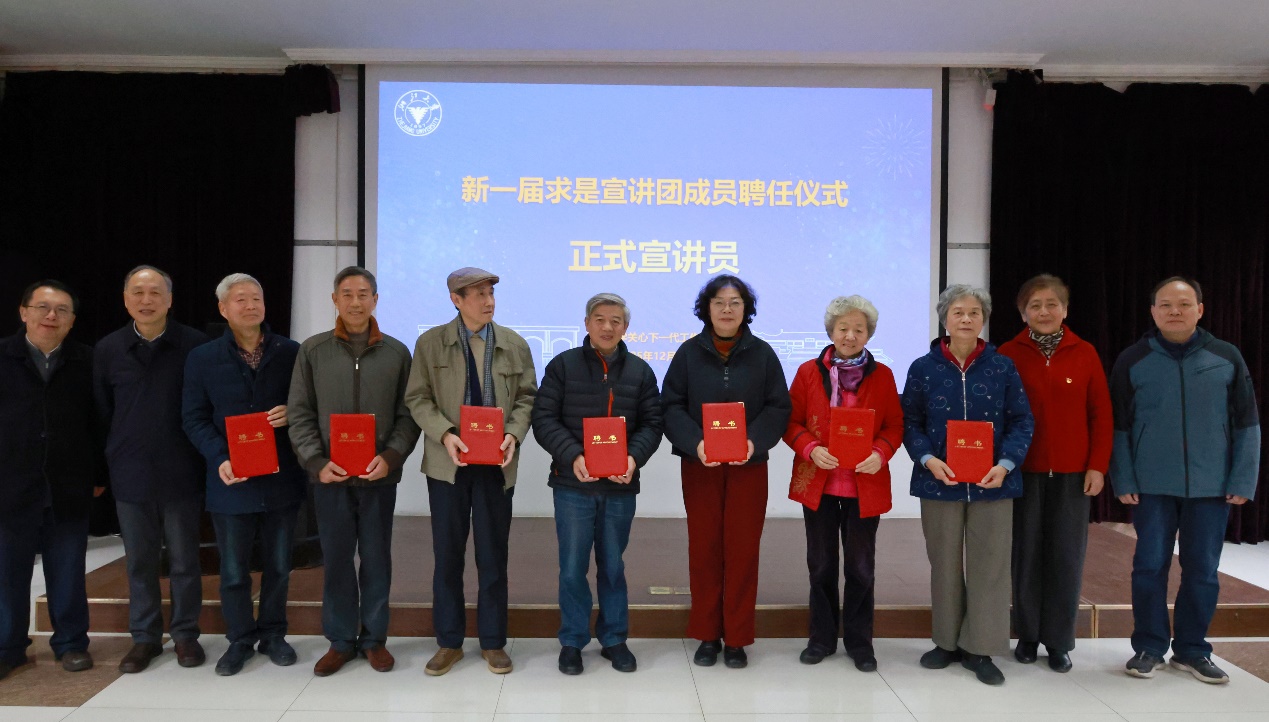 求是宣讲团自2012年成立以来,凝聚了一批德高望重、热心育人的老同志。多年来,他们怀揣对教育事业的无限忠诚,以深厚的理论功底、丰富的阅历学识和真挚的关爱之情,深入学院、课堂、学生社区,宣讲理论、启迪思想,引导学子坚定理想信念,涵养家国情怀,强化使命担当,成为了求是园中弘扬优良传统、传承求是精神的一道亮丽风景,为学校关心下一代工作作出了不可磨灭的贡献。