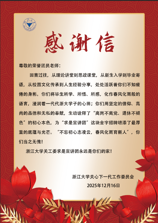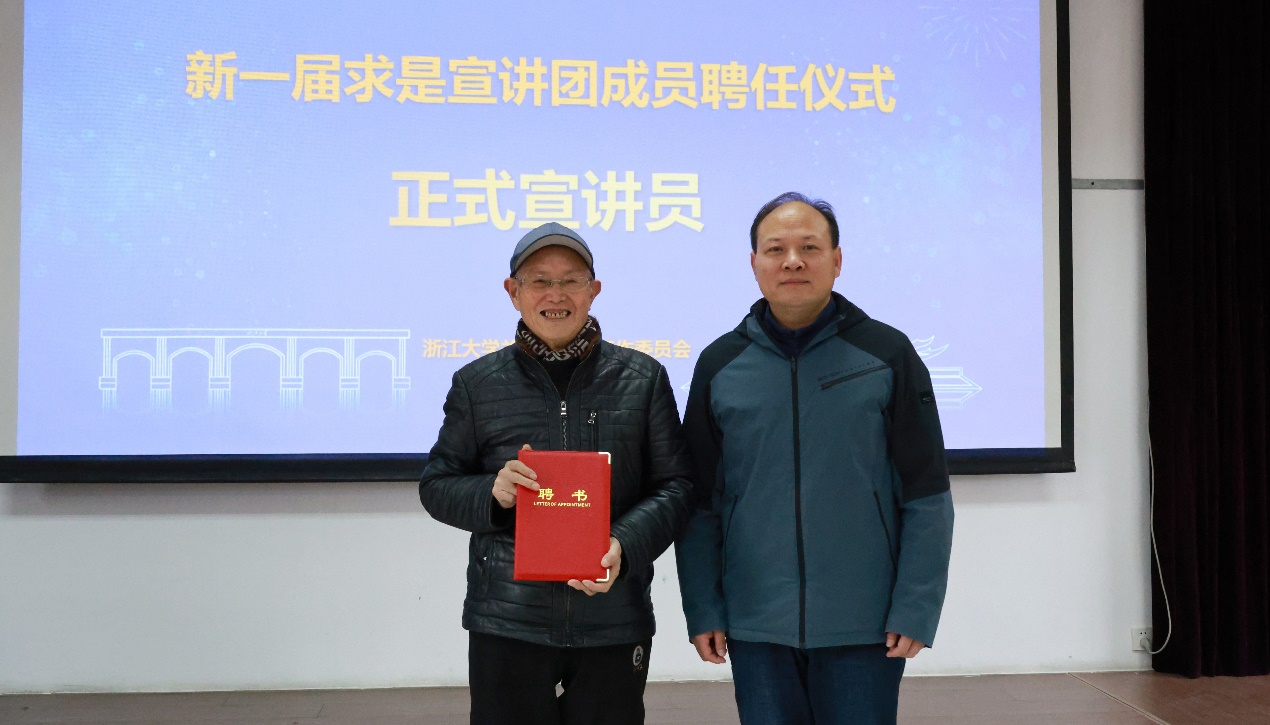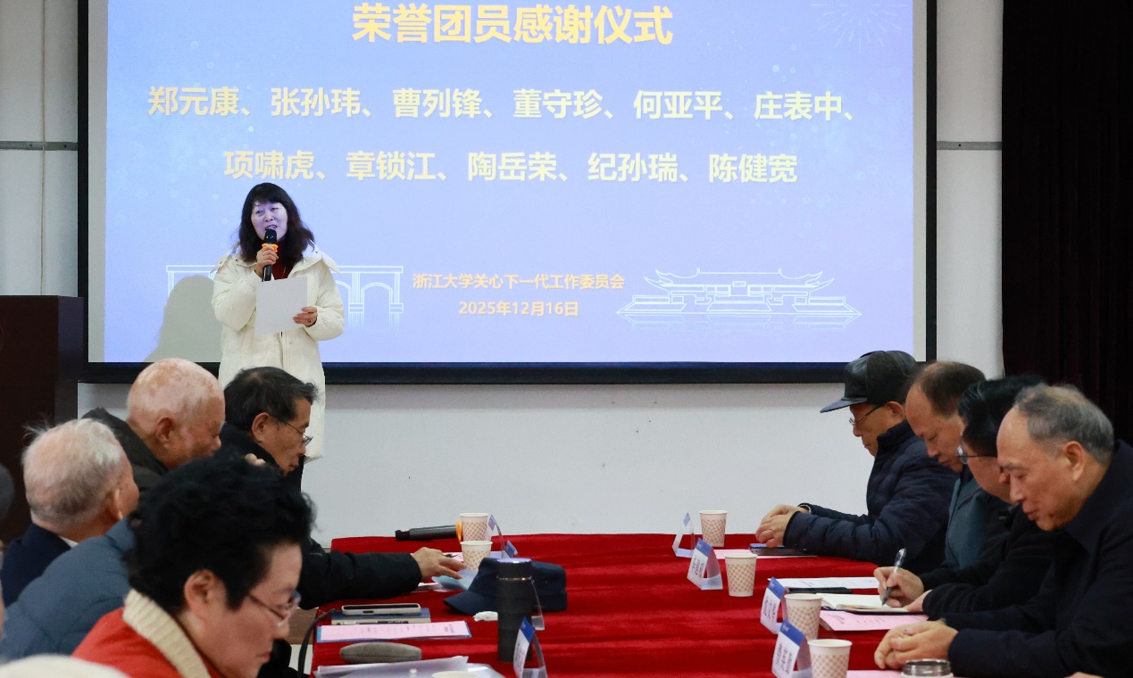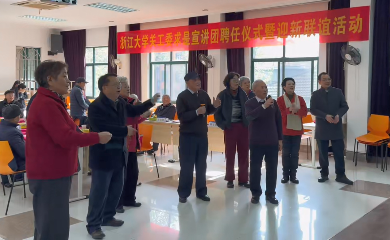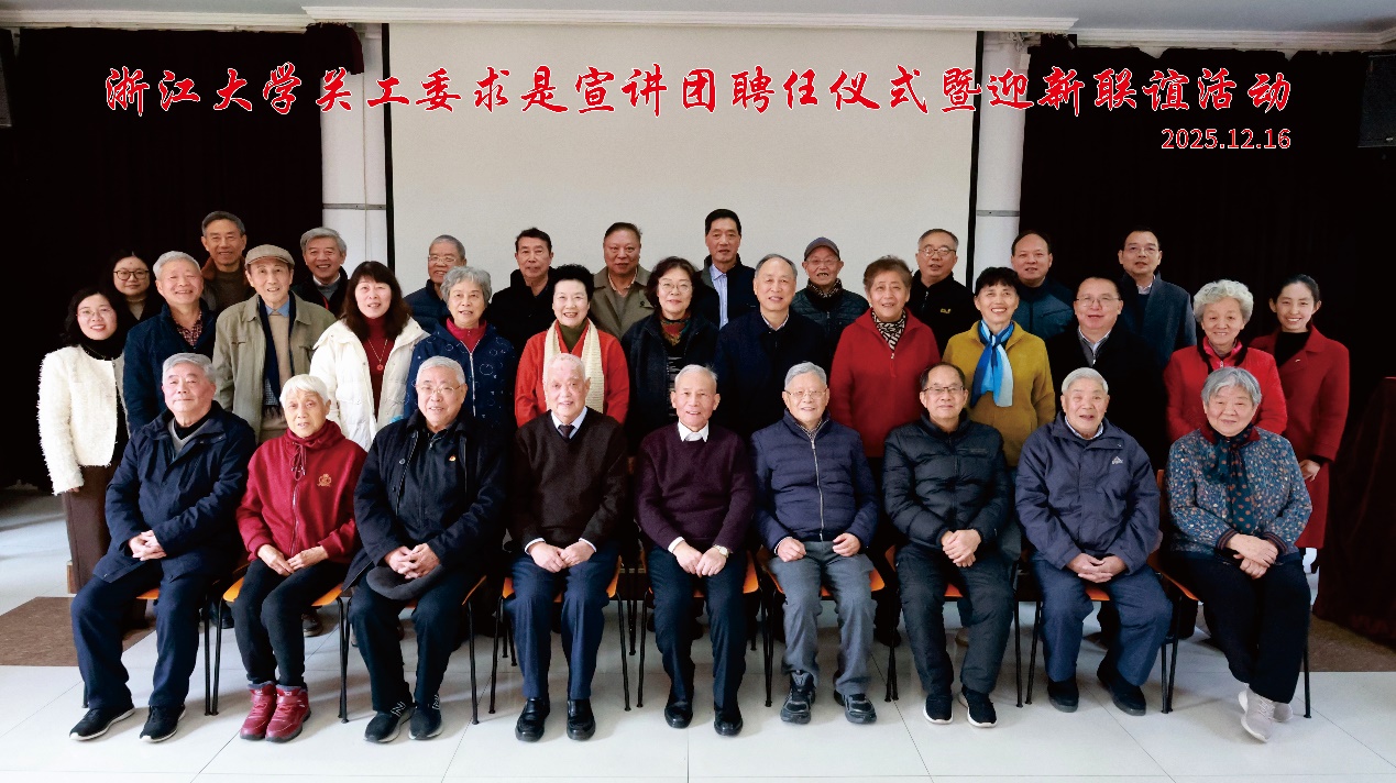 2025年12月16日上午,浙江大学关工委在华家池校区常青楼三楼多功能厅举行求是宣讲团聘任仪式暨迎新联谊活动,用礼赞致敬过往,用歌声憧憬未来。校关工委邹先定、费英勤、张小玲、沈文华、朱征、毕建权,以及求是宣讲团成员近40人参会。会议由离退休工作处副处长、校关工委秘书长陈立明主持。