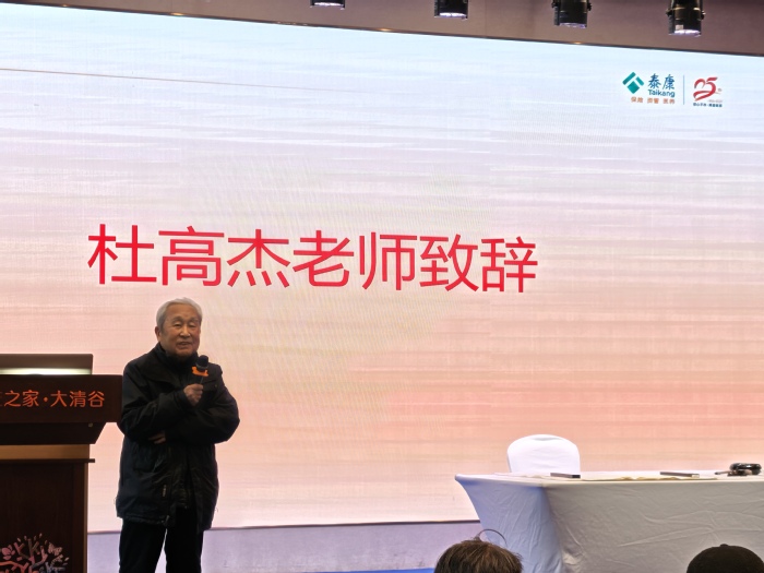 浙江大学著名教授、书画名家、浙大老年书画社顾问杜高杰老师专程到会致辞。杜老师称赞在幽静的大清谷举办浙大老年书画社第八次书画展,非常高雅。从事书法绘画艺术,确实对创作者的身心健康大有益处,让我们的生活进入到了一个比较高的境界,是一种高尚的精神生活。杜老师呼吁全社会都要提高审美水平和审美判断力,建设现代文明社会,追求高层次高格调的精神境界。