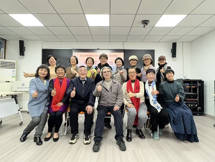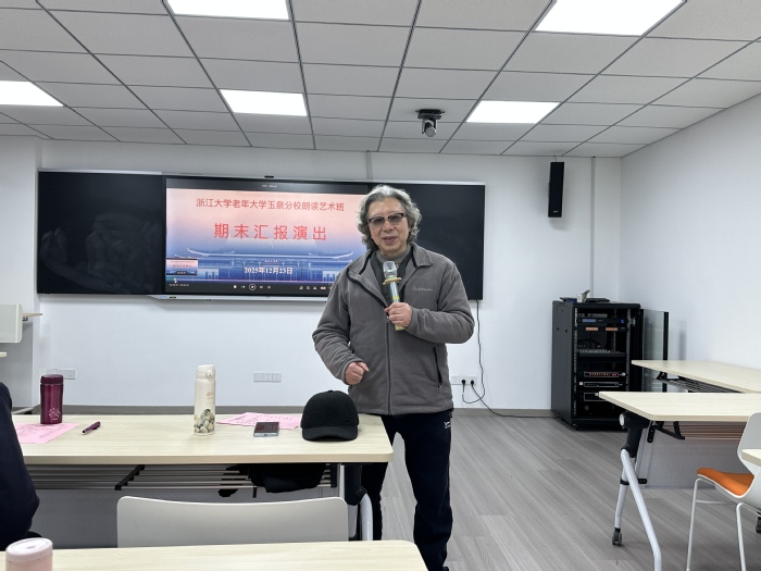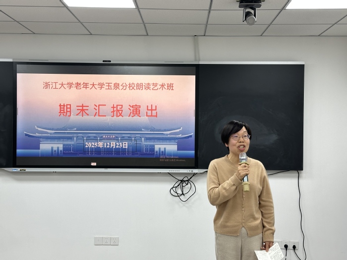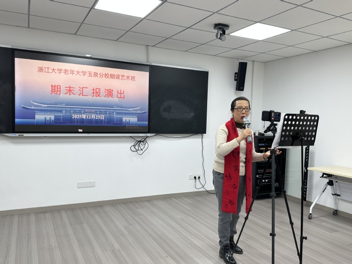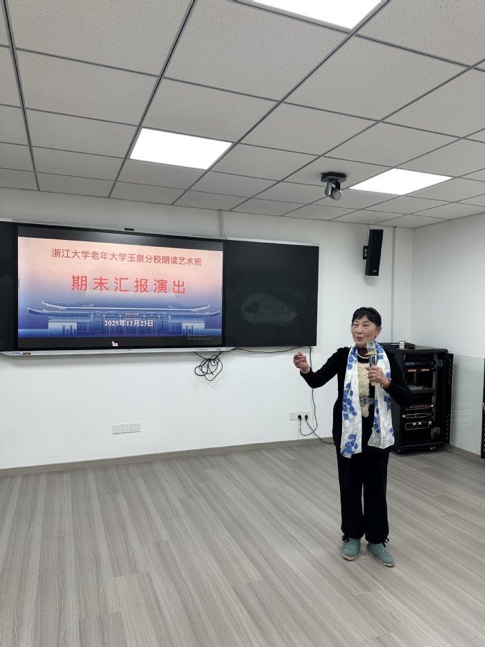 冬日的教室里,灯光柔和,乐声轻缓,12月23日,浙大老年大学玉泉校区卢绍宽校长和朗诵班的朱老师、同学们欢聚在一起,共同迎来2025秋季期末朗诵会。在这个“很美 很慢”的午间,师生们用声音搭建桥梁,把故乡、中国、青春与梦想,悄悄地连在一起。