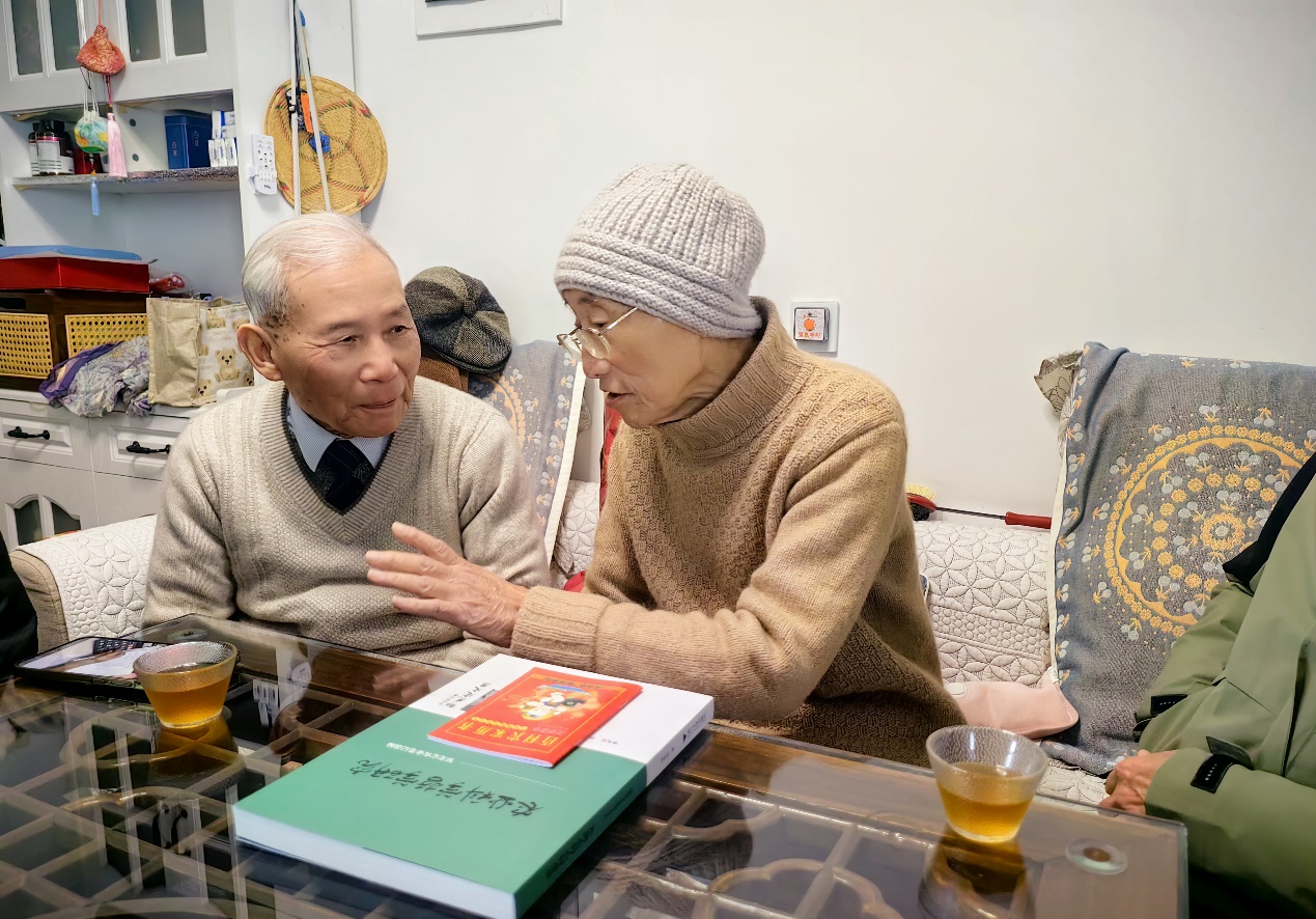 求是宣讲团的理论宣讲常青树,郑老马年有畅想。看着邹团长送他的《农业科学哲学研究》一书,谈起建党百年时的一次次校园、社区的宣讲,和学生和居民的亲切交流老人家感受多多。清晰的思维,流畅的话语来自郑老马不停蹄的持续学习。清晨五点多起身后的网上学习,上午研读的各种报刊,特别是自订的《光明日报》。理论之泉川流奔涌,让我们赞叹不已。郑老几十年如一日的匀速运动,走路做操等让他有了令人羡慕善于抗病的好身体。